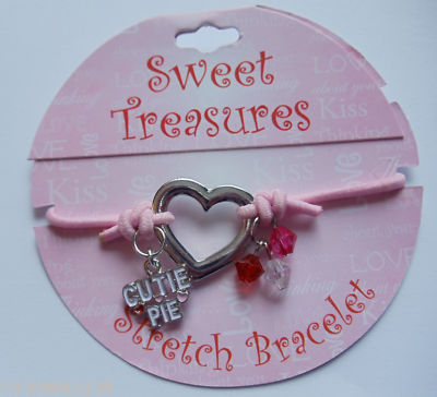 Heart silver toned on stretch material to fit most wrists. small heart charm individually carded and packaged. other styles and colors available in store Please look at my other items I do combine shipping