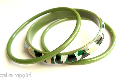 Camouflage Bangle Bracelets Set of 3 Army Green