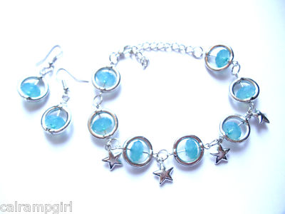 Silver and teal Stars Charm Bracelet earrings set