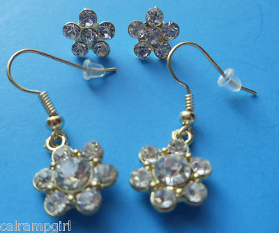 flower with crystal earrings dangle approx 1" beautiful design.