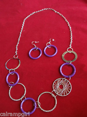 30" Silver Purple Circles Necklace and Earrings Set