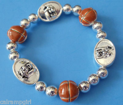 3D basketball and silver tone beads made on stretch material to fit most wrists