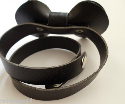 super cute Leather like material wrap around bracelet has 2 snaps to fit and the bow part mesures approx 3" x 1 1/2" strap is approx 1" New in package. I do combine shipping so please look at my other items