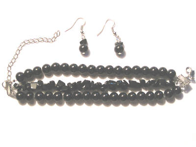 3 Line Beaded Bracelet 2 lines glass 1 center white stones measures 7" with a 2" extender to fit includes matching earrings