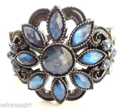 8 1/2" around cuff bracelet w/ hinged opening hard acrylic each is approx 2 1/4" high and has gemstones I do combine shipping so please look at my other items.