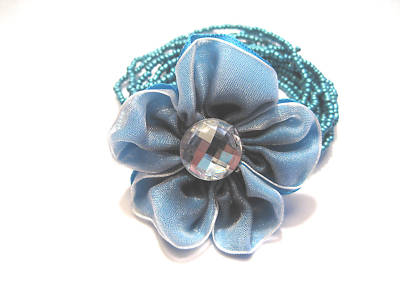 Beaded Stretch to fit most wrists Bracelet w/ mesh flower approx 2" x 2" in size