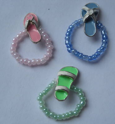 Flip Flop toe ring set of 3 Enamel pink blue green