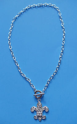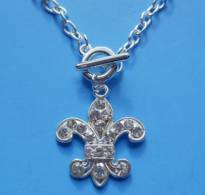 Silver Fleur De Lis Toggle chain link Necklace crystals