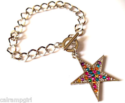7 1/2" long silver tone toggle clasp bracelet. 1 inch star with crystals Individually wrapped