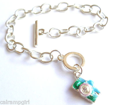 7 1/2" long silver tone toggle clasp bracelet. camera charm is 1/2" Individually wrapped