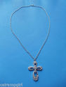Silver with simulated diamond stones dangleing cross measures nearly 2 1/4 inch Includes 24 inches silver chain I do combine shipping so please look at my other items.