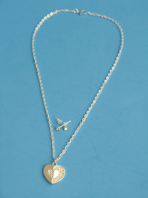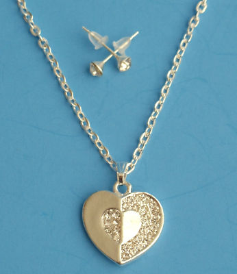 Heart Necklace earrings set Silver Crystal Stones