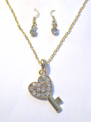 simulated diamond stones measures nearly 1inch beautiful quality Includes 18 inches silver chain and securely fastens together with a lobster-claw clasp. includes matching stud earrings I do combine shipping so please look at my other items.