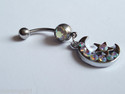 Moon and Star Shimmering Crystal Stones Navel Ring belly Button steel 316L