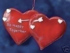 "So Happy Together" personalizable heart ornament. Made of claydough. Measures 3"x 4 1/2" This is a double heart ornament that is personalizable . Would also make a great valentine's gift. Blank heart is available for the sentiment of your choice ( I m sorry but I do not personalize)