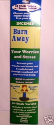 Includes 20 stick variety 5 scents that will relieve worries and stress including finances- orange Relationships- jasmine work- tea family -sandalwood health-rose.