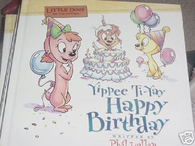You've never had a birthday like this before Little dogs on the Praire. crazy stories, spiritual wishes and birthday prayers,games and recipes jokes and riddles. this is a hard cover book that is completly illustrated. written by Phil Lollar