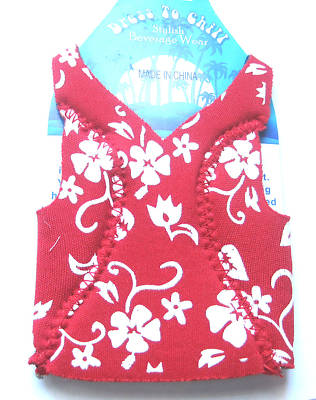 Hawaiian Shirt Shaped Beverage Sleeve Red Hibiscus Coozie