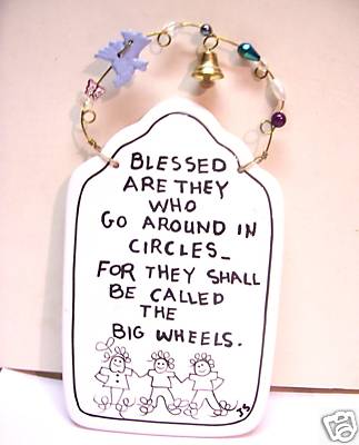 very cute and makes a great gift this one reads Blessed are they who go around in circles- for they shapp be called the big wheels.