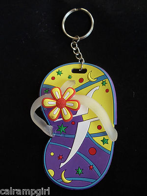 keychain is approx 6" long top to bottom large durable rubber flip flop measures approx 4" - 2" in size