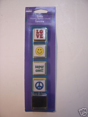 this is a cute set that includes 4 assorted rubber stamps one inch by one inch in size