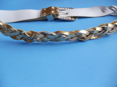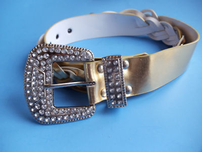 Gold Ladies Belt Braided Back Rhinestone buckle