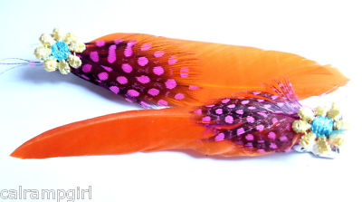 hair clip flower with metal claw with attatched feathers. (vary in size) approx 3" I do combine shipping so please look at my other items. Other colors and styles also available in store