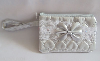 Silver coin Purse Lace Bow with wrist strap