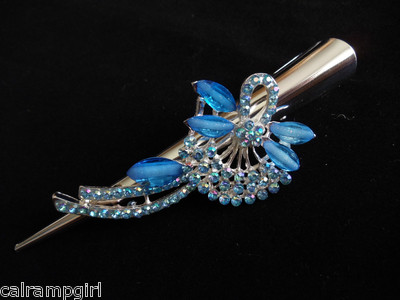 Blue 5" Silver Salon hair Clip claw rhinestones Jaw