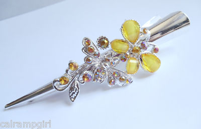 Beautiful High Quality IRIDESCENT Butterfly measures 1" clip is 5" great quality silver metal with rhinestones. I do combine shipping so please look at my other items.