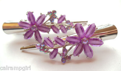 Flower 3" Salon hair Clip set 2 Claws Purple stones