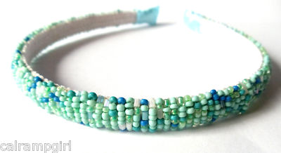 Blue Aqua Seed Beaded headband 1/2" Wide mixed colors