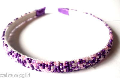 Purple Pink Seed Beaded headband 1/2" Wide mixed colors