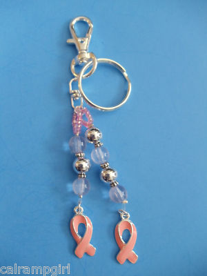 You will recieve 1 keychain. Beaded Pink Ribbon keychain purse charm. Great for keychains, purse charms and more! Great for fund raisers! Meaures approx. 5" long! . I do combine shipping so please look at my other items.