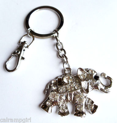 Clear Rhinestone Elephant Keychain Key Ring Clasp