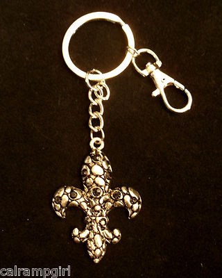 Fleur De Lis Keychain Silver Black crystal Rhinestones Mardi Gras