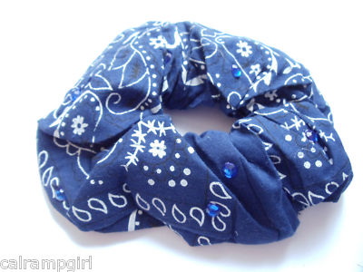 Navy Blue Bandana Hair Scrunchie with gemstones