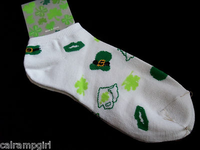St Patricks Day Ankle Socks size 9-11 shamrocks top hats green beer