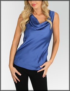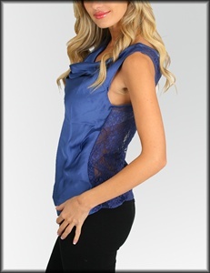 Blue Draped Lace back Blouse Shirt Top Size XS S M L XL
