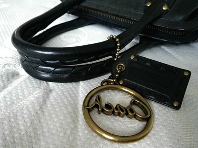 - Authentic Oversize Coach Embossed Laced Leather Hang tag & Oversize Antique Brass Medallion