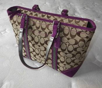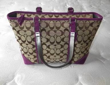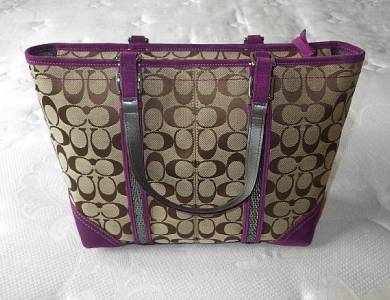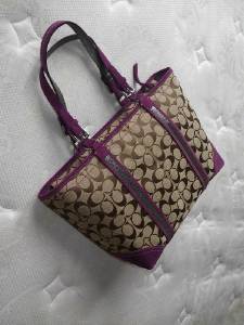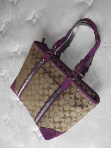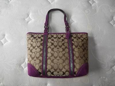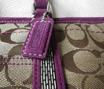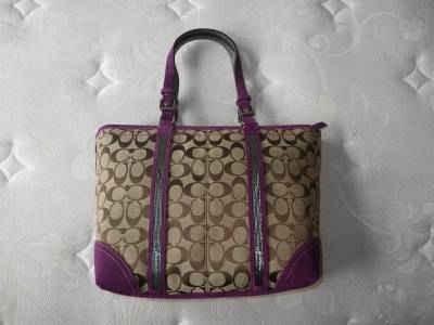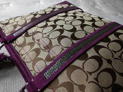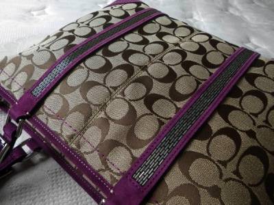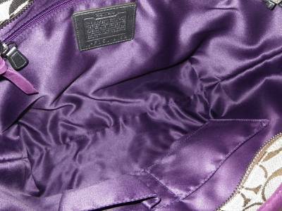 Coach Khaki Signature Jacquard Fabric w/ Finest Purple Leather Trim w/ Beaded Detail