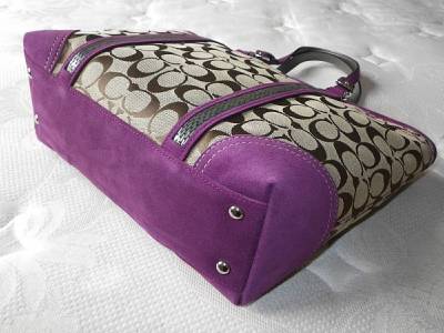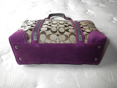 Up for your consideration Gorgeous and Luxurious Coach Signature Beaded Handbag, Style no. 8K52! Beautifully crafted with Iconic Khaki signature C Jacquard Fabric trimmed with finest suede in rare PURPLE leather with beautiful silhouette metallic bead finish (front & back) complete with coach PURPLE suede embossed hang tag, Absolutely FABULOUS!!! The bead details makes it great for a night on the town, really AWESOME! I have no doubt this is another coach bag you will surely love to have. This is SOLD OUT everywhere, extremely Rare and Very hard to find online in this color combination and BRAND NEW condition, in fact ONLY ONE on ebay right now! Please see photos for other details. Valued almost $500 with Tax included.