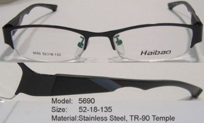 Material: Stainless Steel: Color Black on Black with cut out side arms for a very fashinable look. Half Rim