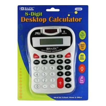 "BAZIC 8-Digit Silver Desktop Calculator w/ Tone - Auto power off - 8-Digit display - Square root keys - Full function memory - Perfect size for your desktop -Constants for addition, subtraction, multiplication & division - Adjustable Display Battery included Ideals for School, Home & Office. Calculator size is 4"" x 6""." Case Pack 48