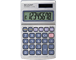 Durable, Twin-Powered Basic Hand-Held Size Calculator with Extra-Large Display. Extra Large Display, 8-digit (13.5 mm) LCD display with punctuation. Metal Cabinet, durable design for longer life. Twin Power Solar Operation, automatically switches from solar cells to battery power in low light. 4-Key Memory, includes memory plus, memory minus and recall/clear memory keys. Additional Features: colored conversions keys, sign change, percent and square root keys, and protective wallet.