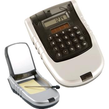 "Premium 4-in-1 Solar Calculator Features: Environmentally friendly solar operated 8-digit LCD display Button cell battery for backup Mirror Ball point pen Note pad Item Size 2.625"" W x 4.125"" H x 0.625"" D" Case Pack 25
