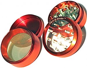 THERE IS NO OTHER GRINDER LIKE THIS ONE! Designed by highly sophisticated CNC machines...which utilize the latest technology in processing and shaping aluminum. CNC aluminum that is extremely durable and strong. The grinder has a clear top so you can see your herbs being grounded. Two neodymyum magnets are used to keep a nice and tight closure. This grinder has four chambers, CNC diamond cut razor sharp teeth to grind with efficiency and ease. This is the best grinder for catching and storing pollen. The micro mesh screen allows only pollen to fall through into the fourth chamber. Best selling grinder available, because of it's size, quality and durability and great price!