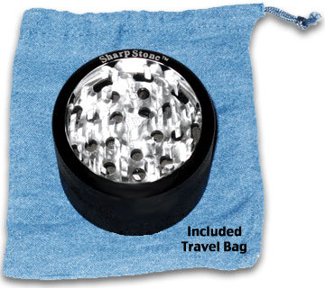 Each grinder comes with a complimentary grinder pouch and pollen scraper. This grinder has a Teflon O ring that makes grinding easy, with no metal shavings GUARANTEED!