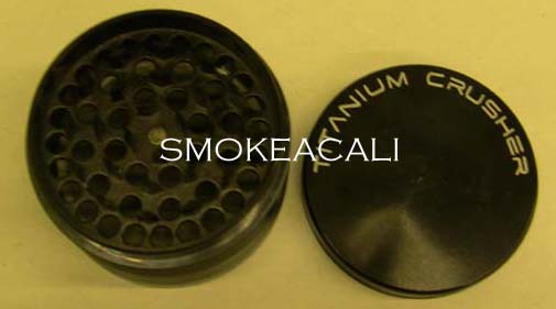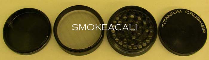 This is the Titanium Crusher grinder. It it lives up to it's name. It has four chambers. It has a magnetic top. It comes along in a velour carrying bag. It is a non-aluminum grinder. The metal alloy that the grinder is made of is far more superior than other aluminum grinders. The Titanium Crusher has a special coating that minimizes scratch and wear and tear overtime.