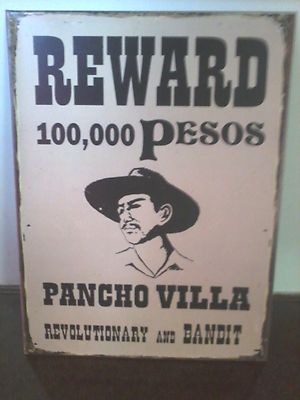 Reward 100,000 Pesos Pancho Villa Revolutionary And Bandit Sign...